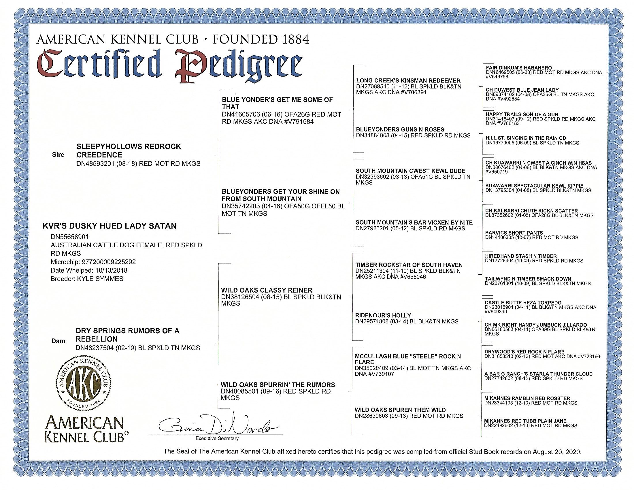 KVR's Dusky Hued Lady Satan "Josie " AKC